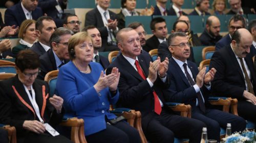 «Το χάος που κυριαρχεί στην Λιβύη κινδυνεύει να έχει συνέπειες σε ολόκληρη την Μεσόγειο, εάν δεν επιβληθεί ηρεμία το συντομότερο δυνατόν», δήλωσε ο Ερντογάν εγκανιάζοντας το νέο γερμανοτουρκικό πανεπιστήμιο στην Κωνσταντινούπολη μαζί με την Άνγκελα Μέρκελ.