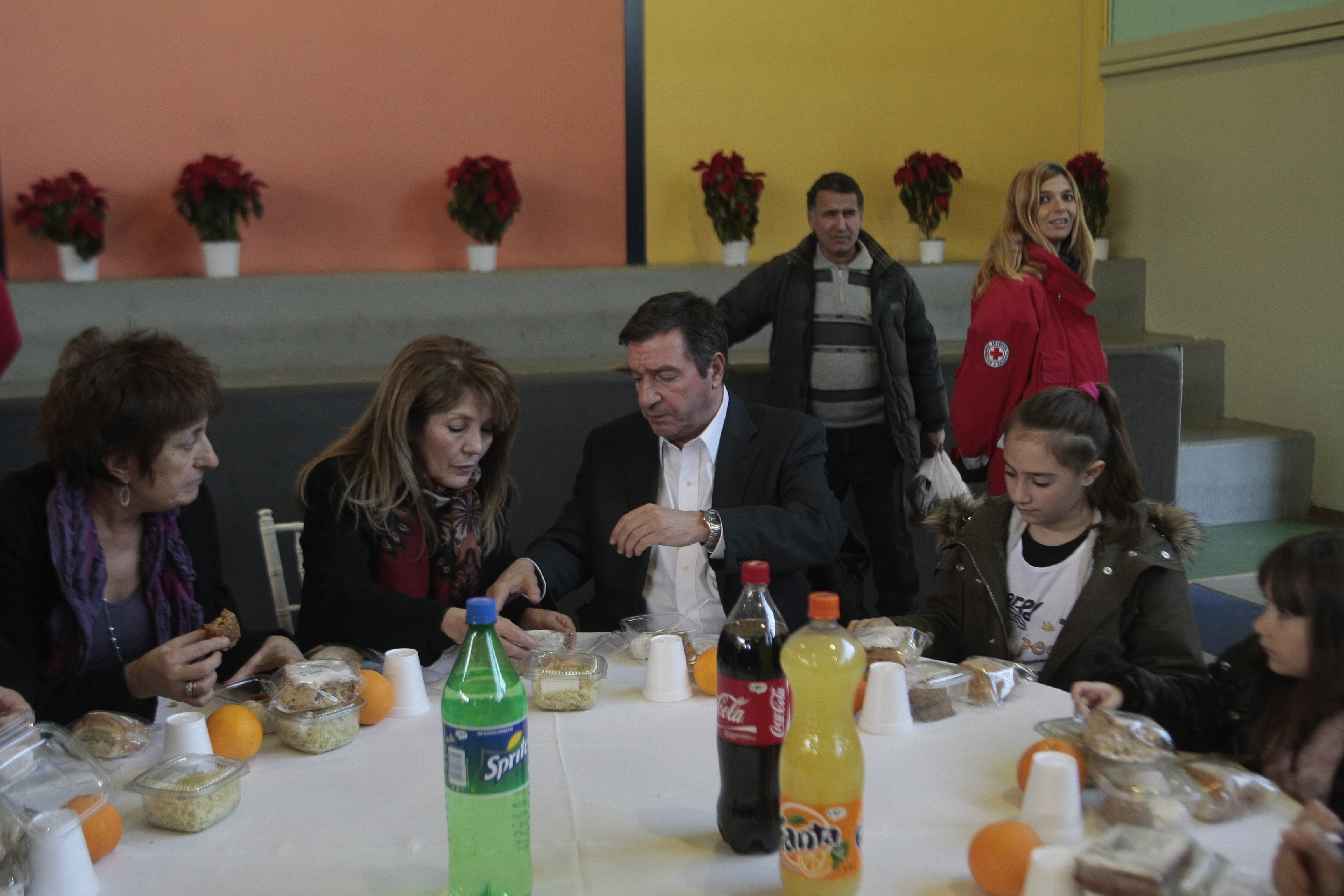 Σύμφωνα με την πρόεδρο του ΚΥΑΔΑ κυρία Ελένη Κατσούλη στο πρωτοχρονιάτικο γεύμα συμμετείχαν περισσότεροι από 500 πολίτες και ήταν προσφορά του ομίλου Interamerican για το Κέντρο Υποδοχής και Αλληλεγγύης του Δήμου Αθηναίων (ΚΥΑΔΑ) στο κλειστό δημοτικό γυμναστήριο του Ρουφ.