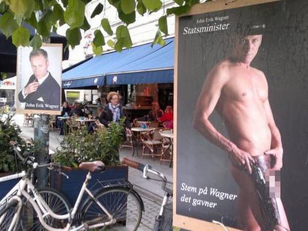 Αυτός είναι ο Τζον Ερικ Βάγκνερ, ο 51χρονος που αναμφισβήτητα έβγαλε την πλέον πολυσυζητημένη προεκλογική αφίσα στη Δανία, κερδίζοντας την προσοχή όχι μόνο στη χώρα του, αλλά σε όλο τον κόσμο. Σε αυτή, ποζάρει ως γυμνός καουμπόι, δίχως να φορά τίποτα άλλο πέρα από τη θήκη του όπλου και το καπέλο του. Με αυτό τον τρόπο πιστεύει ότι θα πείσει τους Δανούς να τον εκλέξουν πρωθυπουργό και θα διαδεχθεί την εντυπωσιακή ξανθιά Χέλε Τόρνινγκ Σμιτ.