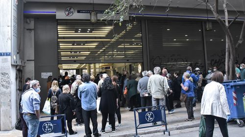 Περισσότερα από 500 άτομα βρίσκονται συνωστισμένα έξω από το κατάστημα της ΔΕΗ.