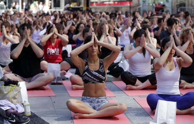Περίπου 17.000 άνθρωποι, σύμφωνα με τους διοργανωτές, μεταξύ των οποίων και ο Γενικός Γραμματέας του ΟΗΕ, τίμησαν την Κυριακή στην Τάιμς Σκουέαρ στη Νέα Υόρκη την πρώτη Παγκόσμια Ημέρα της γιόγκα.