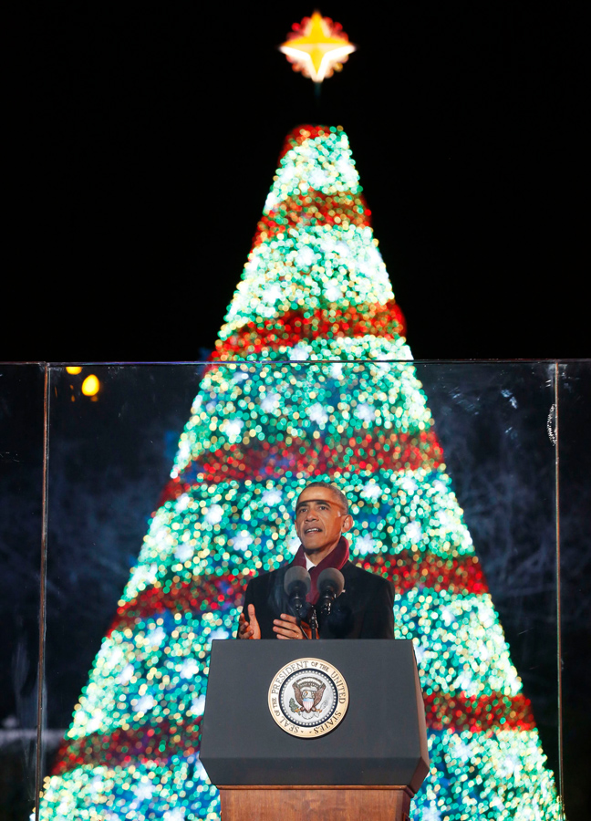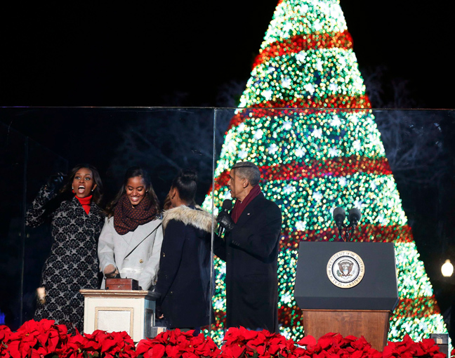 Ο Ομπάμα, μαζί με την Πρώτη Κυρία Μισέλ και τις δυο τους κόρες μέτρησαν αντίστροφα έως το άναμμα του δέντρου και έστειλε μήνυμα ευχαριστίας στα αμερικανικά στρατεύματα που θα είναι μακριά από τις οικογένειές τους κατά τη διάρκεια της περιόδου των εορτών.