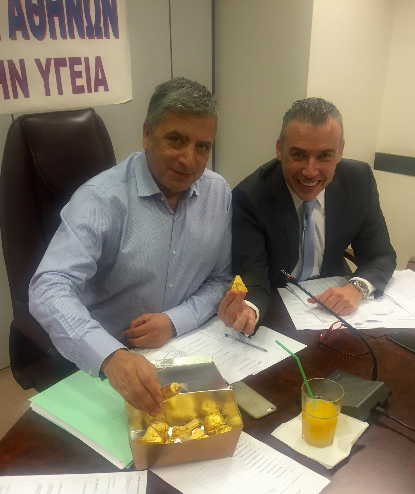Ετσι, πόσταρε χθες μια φωτογραφία του με «χρυσά» σοκολατάκια γράφοντας: «Και επειδή αυτό δε το έχω δει να παίζει πουθενά… Ο Πατούλης κερνάει ΜΟΝΟ χρυσά σοκολατάκια»!