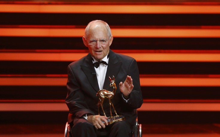 Ο κ. Σόιμπλε δέχθηκε το θερμό χειροκρότημα του κοινού που στάθηκε για ώρα όρθιο προς τιμήν του, στο κατάμεστο Θέατρο της Potsdamer Platz, όπου φιλοξενήθηκε η φετινή διοργάνωση του σημαντικότερου θεσμού βραβείων των ΜΜΕ στην Γερμανία.