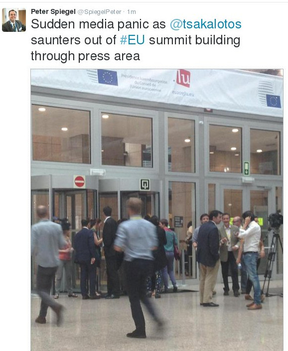 «Ξαφνικός πανικός στα μίντια καθώς ο Ευκλείδης Τσακαλώτος φεύγει από το κτίριο που συνέρχεται η Σύνοδος Κορυφής και περνά από την περιοχή που βρίσκονται οι εκπρόσωποι του Τύπου».