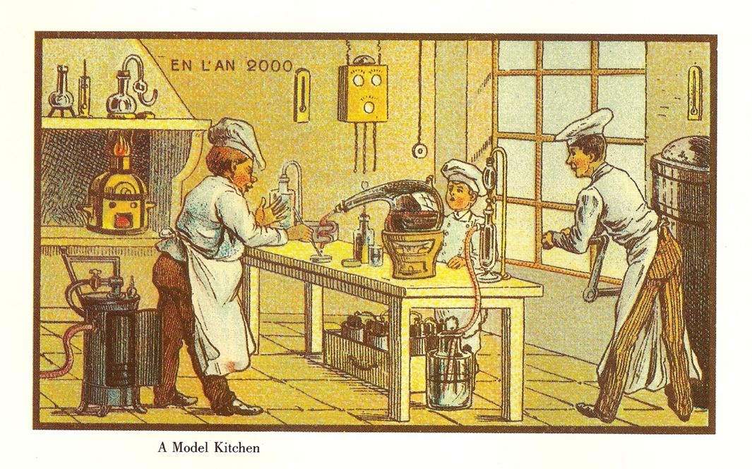 Ιπτάμενοι αστυνομικοί και πυροσβέστες, αυτόματες μηχανές σε κουρεία και κουζίνες, ηλεκτρικές σκούπες, φάλαινες που μετατρέπονται σε υποβρύχια λεωφορεία και μηχανές παραγωγής… κοτόπουλων. Αυτές είναι μόλις λίγες από τις «δαιμονικές» ιδέες των Παριζιάνων καλλιτεχνών. Κάποιες αποδείχτηκαν αρκετά προφητικές, κάποιες άλλες απλώς δείχνουν πόσο… μακριά μπορεί να φτάσει η φαντασία.