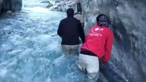 Τελικά οι κάτοικοι πήραν την κατάσταση στα χέρια τους και επισκεύασαν μόνοι τους τον αγωγό μπαίνοντας στα ορμητικά νερά του ποταμού.