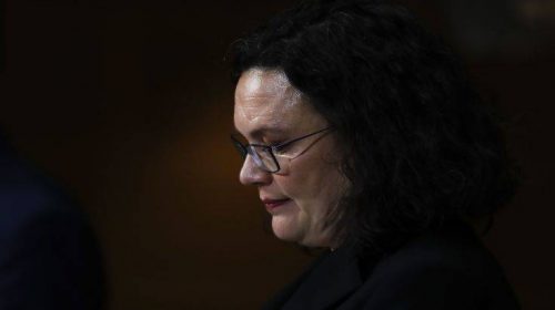 «Πιστεύω ότι πρέπει να αποχωρήσουμε από τον κυβερνητικό συνασπισμό», δήλωσε η Ζιμόνε Λάνγκε δήμαρχος της πόλης Φλένσμπουργκ και αντίπαλος της Νάλες για την ηγεσία του SPD πέρυσι.