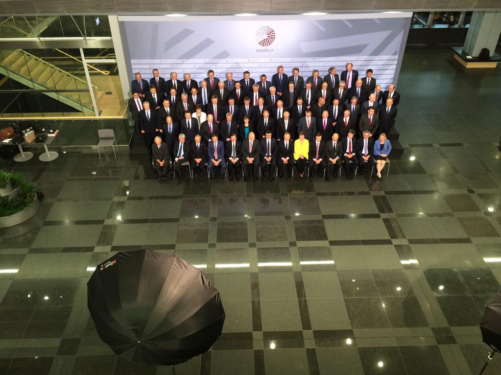 Υπάρχει λοιπόν η «οικογενειακή φωτογραφία» με όλους τους συμμετέχοντες στις συσκέψεις στη Ρίγα, όπου ο Γίανης Βαρουφάκης, ανάμεσα σε ένα πλήθος από γραβατωμένους αξιωματούχους χαμογελά αμυδρά, με τον Guardian να προσπαθεί να εντοπίσει τις μελανιές από το σφυροκόπημα που δέχτηκε.