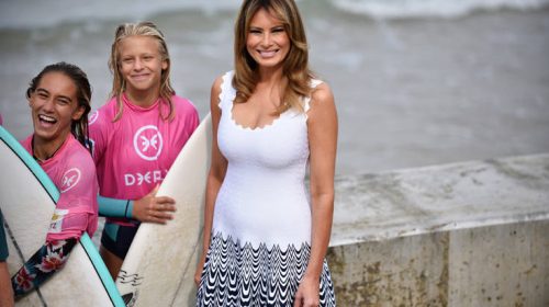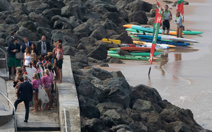 Η πρώτη κυρία της Γαλλίας, η Μελάνια Τραμπ, η Άκιε Άμπε (σύζυγος του Ιάπωνα πρωθυπουργού Σίνζο Άμπε) η Σεσίλια Μορέλ (σύζυγος του προέδρου της Χιλής Σεμπαστιάν Πινιέρα) η Τζένι Μόρισον (σύζυγος του Αυστραλού πρωθυπουργού Σκοτ Μόρισον) καθώς και οι σύζυγοι του Ντόναλντ Τουσκ, του προέδρου του Ευρωπαϊκού Συμβουλίου και του Ντέιβιντ Μάλπας, προέδρου της Παγκόσμιας Τράπεζας, συναντήθηκαν με δύο πρωταθλητές του σερφ.