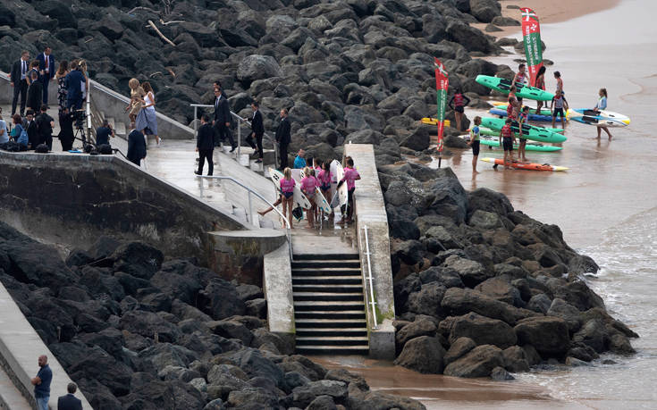 Οι «πρώτες κυρίες» της G7 αφιέρωσαν το πρωινό τους σήμερα σε ένα από τα θέματα της συνόδου κορυφής, την προστασία των ωκεανών και των υδάτων, αφού προηγουμένως παρακολούθησαν επιδείξεις σερφ και διάσωσης στη θάλασσα από νέους αθλητές.