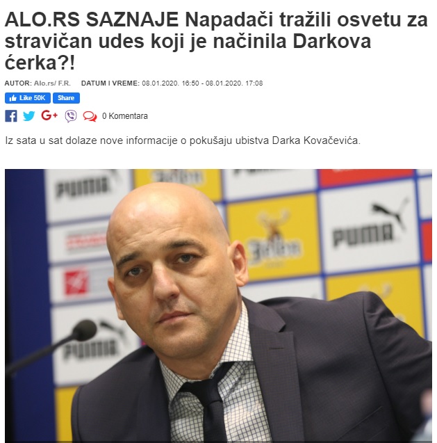 Όσο περνούν οι ώρες όλο και πληθαίνουν τα δημοσιεύματα Μέσων της Σερβίας αναφορικά με την ένοπλη επίθεση που δέχθηκε το βράδυ της Τρίτης (7/1) ο Ντάρκο Κοβάσεβιτς.
