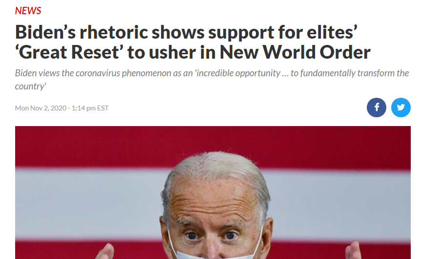 Σύμφωνα με αναλυτές, ο, κατά πάσα πιθανότητα, νέος Πρόεδρος των ΗΠΑ τάσσεται υπέρ του ριζοσπαστικού αριστερόστροφου παγκόσμιου σχεδίου «The Great Reset – Η Μεγάλη Επανεκκίνηση», το οποίο είχε παρουσιάσει τον Ιούνιο η ιστοσελίδα El.gr