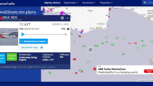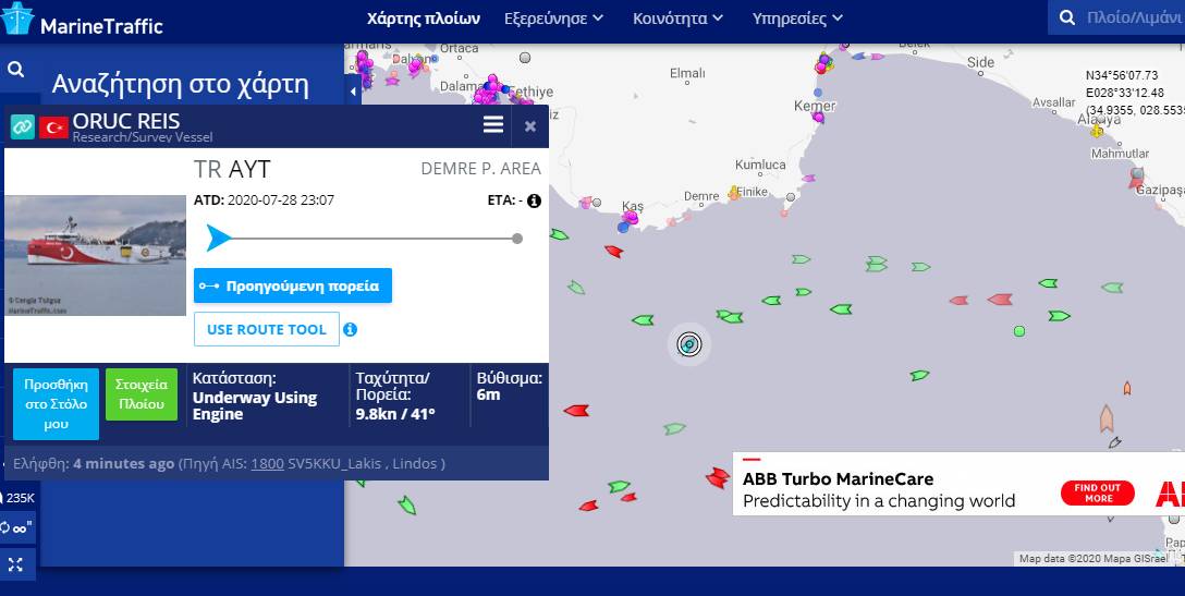 Εδώ και λίγες ώρες ωστόσο, το τουρκικό πλοίο άρχισε να κινείται βορειοανατολικά, με ταχύτητα περίπου 10 κόμβων και πορεία προς το λιμάνι της Αττάλειας.
