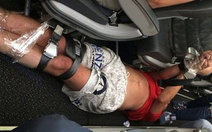 Ο άνδρας ακινητοποιείται καθώς οι επιβάτες τον δένουν με ζώνες και κολλητικές ταινίες.