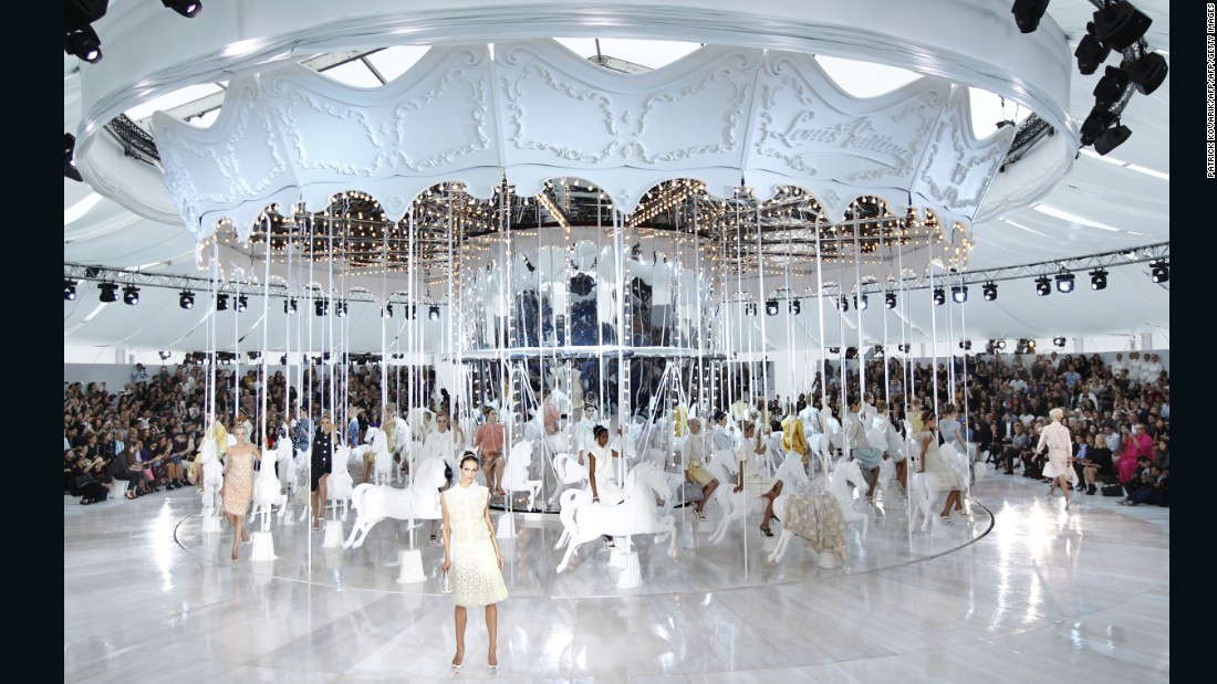 Luis Vuitton Spring/Summer 2012– Ο οίκος τοποθέτεισε ένα καρουζελ στην αίθουσα, αντιχώντας τα μοντέλα με τα άλογα του μηχανήματος,