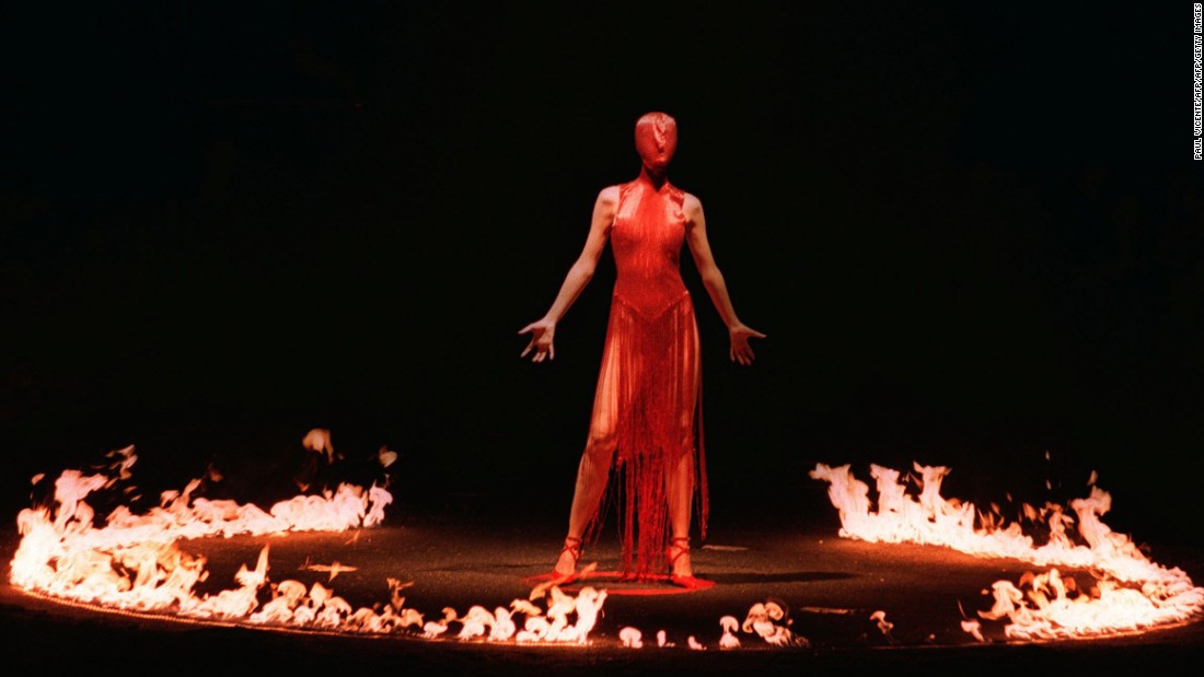Alexander McQueen Fall/Winter 1998-Η τελευταία του δημιουργία παρουσιάστηκε με ένα μοντέλο να είναι περικυκλωμένο από φλόγες.