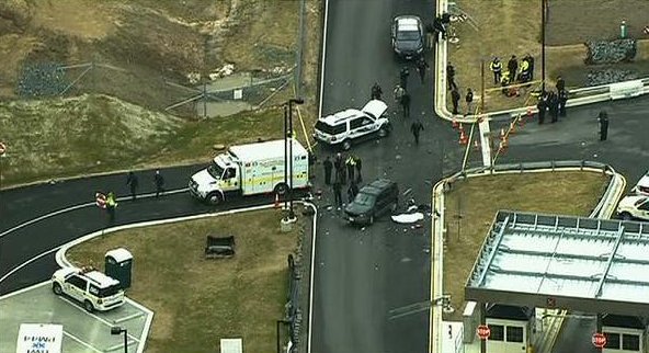 Σύμφωνα με τις πρώτες πληροφορίες των τοπικών ΜΜΕ, το αυτοκίνητο έπεσε πάνω στην πύλη, ενώ ακολούθησαν πυροβολισμοί. Εικόνες από τις εγκαταστάσεις, στο Φορτ Μιντ του Μέριλαντ, δείχνουν δύο αυτοκίνητα- το ένα από τα οποία είναι περιπολικό- να έχει εκτεταμένες ζημιές.