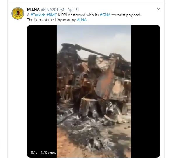 Αλλά και τα τουρκικής κατασκευής θωρακισμένα οχήματα «KIRPI» μεταφοράς προσωπικού «σπάνε» σαν παιχνίδια από τις επιθέσεις του Χάφταρ!