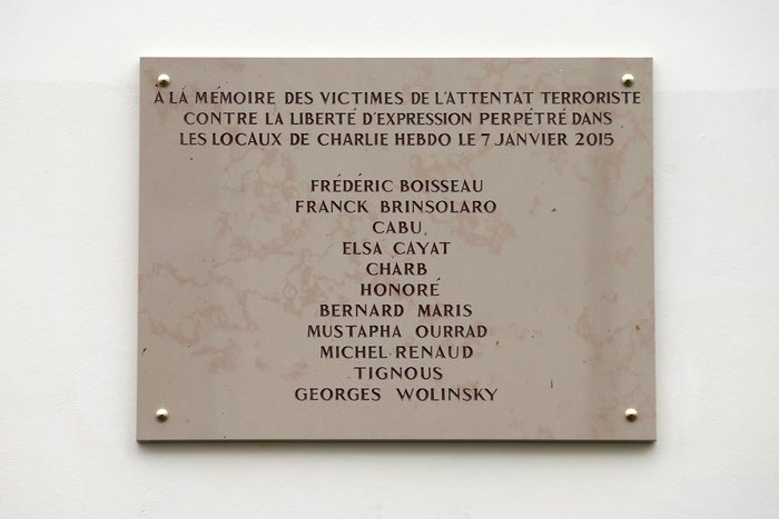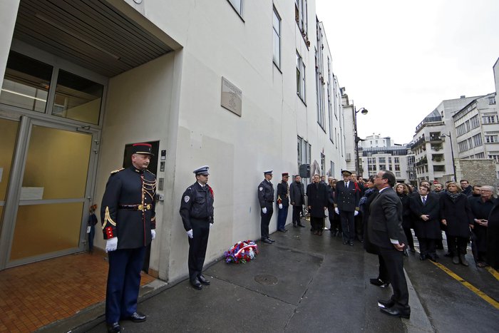Κατά τη διάρκεια της εκδήλωσης μνήμης, έγιναν και τα αποκαλυπτήρια μιας τιμητικής επιγραφής με τα ονόματα των θυμάτων της τρομοκρατικής επίθεσης τις 7ης Ιανουαρίου του 2015, όπου οι τζιχαντιστές αδελφοί Σαΐντ και Σερίφ Κουασί σκότωσαν 12 ανθρώπους.