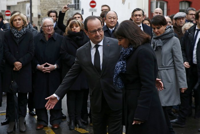 Συνοδευόμενος από τη δήμαρχο του Παρισιού Αν Ινταλγκό και τον πρωθυπουργό της Γαλλίας Μανουέλ Βαλς, έκανε στη συνέχεια τα αποκαλυπτήρια μιας πλάκας σε κοντινή λεωφόρο, εκεί όπου ο αστυνομικός Αχμέντ Μεραμπέ είχε πέσει νεκρός λίγο μετά την επίθεση.
