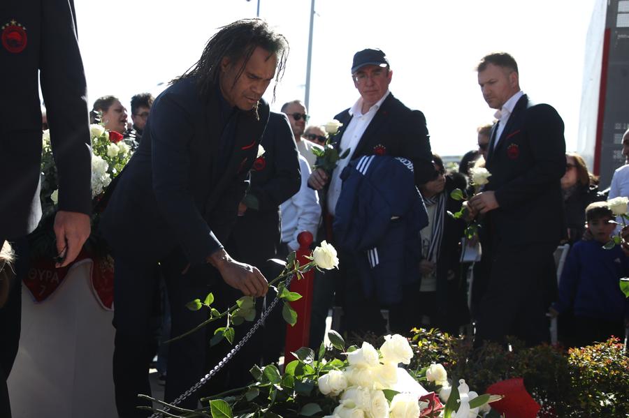 Η ατμόσφαιρα στο μνημείο έξω από το «Γεώργιος Καραϊσκάκης» ήταν βαριά. Έβλεπες στα μάτια όλων, από τους παλιούς που έζησαν την τραγωδία μέχρι τα πιτσιρίκια των ακαδημιών, τον ίδιο σεβασμό. Στεφάνια, λουλούδια και βουβός πόνος για τις ψυχές που έφυγαν τόσο άδικα και τόσο νωρίς.