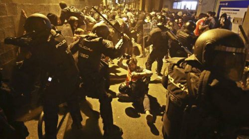 Επιχείρησαν επίσης να ρίξουν τις μπάρες ασφαλείας που είχαν στηθεί γύρω από τα τοπικά κεντρικά γραφεία της ισπανικής κυβέρνησης στο κέντρο της πόλης. Η αστυνομία χρησιμοποίησε γκλοπ ενάντια στους διαδηλωτές, αποτρέποντάς τους να αποκλείσουν αυτοκινητοδρόμους και έναν σιδηροδρομικό σταθμό στην περιοχή. Ένας εκπρόσωπος της τοπικής αστυνομίας Mossos δήλωσε ότι τρία άτομα συνελήφθησαν.