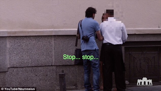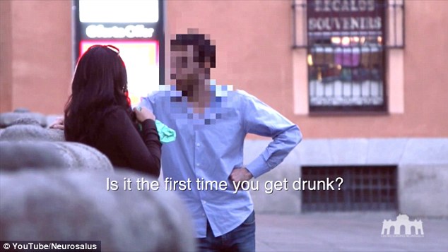 Το κοινωνικό πείραμα έγινε ένα απόγευμα στους δρόμους της Μαδρίτης. Στο 10λεπτο βίντεο που ανέβασε στο YouTube η κλινική «Centro Europeo Neurosalus» φαίνεται η γυναίκα που είναι ηθοποιός να πίνει αλκοόλ από ένα μπουκάλι.