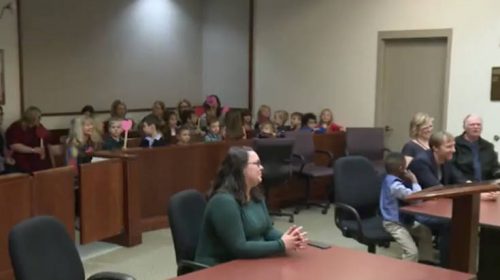 Στην αίθουσα εμφανίστηκε ο 5χρονος Μάικλ για να παραστεί στην ακροαματική διαδικασία που αφορούσε την υιοθεσία του από τους ανάδοχους γονείς του και μαζί του ήταν για συμπαράσταση όλη η τάξη του νηπιαγωγείου του!