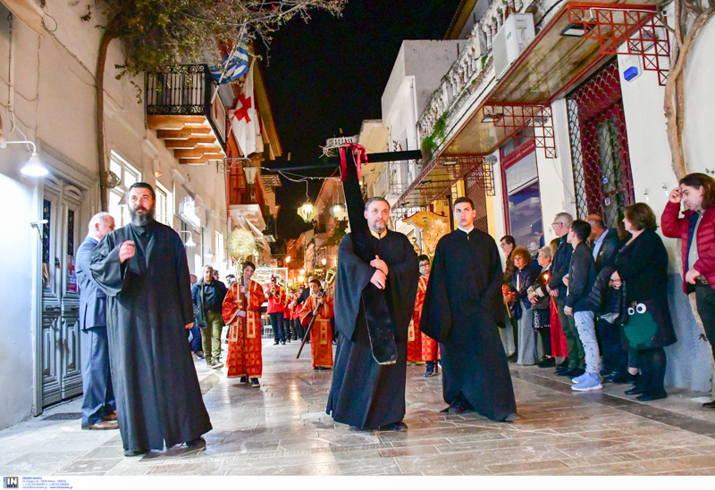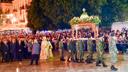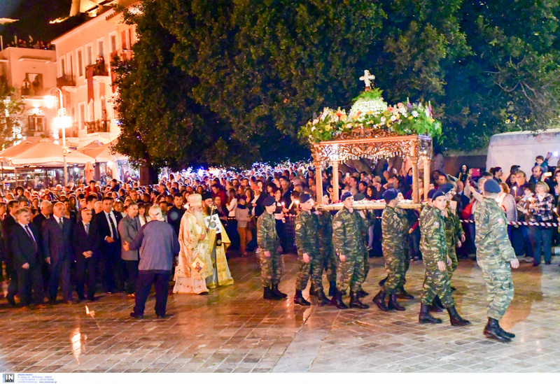 Πιο νωρίς έγινε η ακολουθία του Επιτάφιου στον Μητροπολιτικό ναό του Αγίου Γεωργίου χοροστατούντος του Μητροπολίτη Αργολίδος και παρουσία της πολιτικής και στρατιωτικής ηγεσίας του νομού