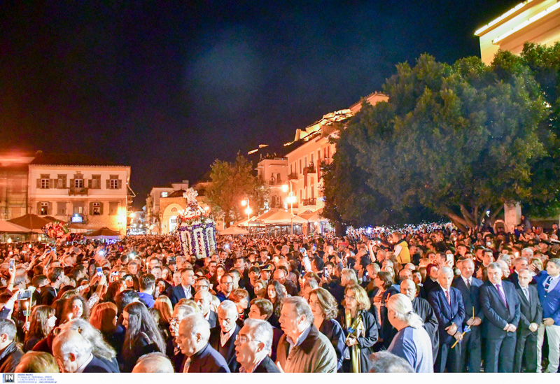 Οι επιτάφιοι του Αγίου Γεωργίου και της Παναγίας μετά την λιτανευτική πομπή, συναπαντήθηκαν μαζί στην κεντρικότερη πλατεία του Ναυπλίου. Η τελετή πραγματοποιήθηκε προεξάρχοντος του Μητροπολίτη Αργολίδος Νεκτάριου.