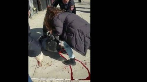 Το βίντεο, που εξασφάλισε το New York Post, δείχνει τον 28χρονο στη μέση του δρόμου, με το αίμα του να τρέχει στο πεζοδρόμιο και την κοπέλα του να τον κρατά μέχρι να τον πάρουν από το σημείο της επίθεσης.