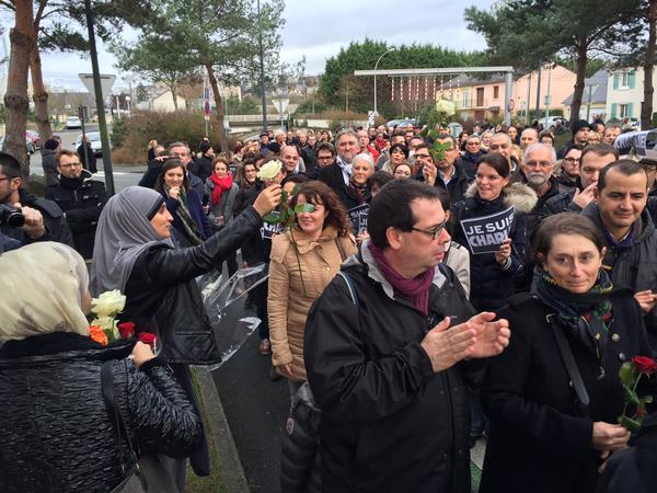 Στις πορείες συμμετείχαν και μέλη της μουσουλμανικής κοινότητας στη Γαλλία, διαδηλώνοντας υπέρ της ειρήνης και στέλνοντας το μήνυμα ότι ο κάθε μουσουλμάνος δεν σημαίνει ότι είναι και εξτρεμιστής ισλαμιστής και εν δυνάμει δολοφόνος.
