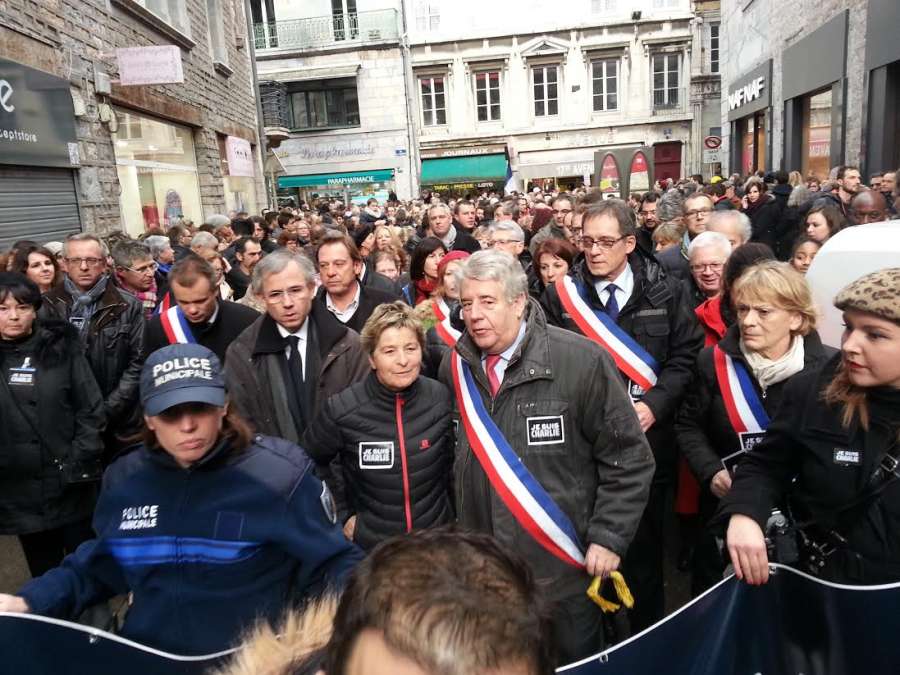 Ο σοσιαλιστής δήμαρχος του Μπεσανσόν, Ζαν-Λουί Φουσερέ, ο περιφερειάρχης του Φρανς-Κοντέ, Στεφάν Φρατασί, η πρόεδρος του περιφερειακού συμβουλίου, Μαρί-Γκιτ Ντιφέ επικεφαλής πορείας 15.000 ατόμων στο Doubs