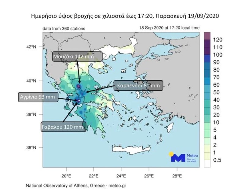 Τη νύχτα που πέρασε πολλές περιοχές της Θεσσαλίας αντιμετώπισαν σοβαρά προβλήματα από τις καταρρακτώδεις βροχές οι οποίες οδήγησαν στην υπερχείλιση χειμάρρων, καταστροφή υποδομών, κτιρίων και γεφυρών και δυστυχώς στον θάνατο δύο ανθρώπων. Τις πρωινές και απογευματινές ώρες του Σαββάτου 19/09 αναμένεται επιδείνωση του καιρού στην Ανατολική Πελοπόννησο με κατά περιόδους έντονες βροχοπτώσεις και πιθανόν καταιγίδες.