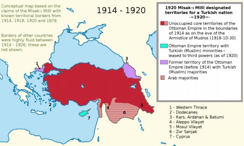 Η ακόλουθη φράση του Κεμάλ κάνει πλήρως αντιληπτή την ουσία του «Εθνικού Ορκου»: «Κάθε έδαφος όπου ζουν Τούρκοι περιλαμβάνεται στο Misak-ı Millî.