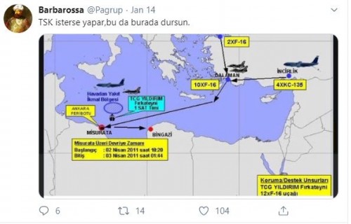 Σήμερα πολεμούμε για το Χαλέπι και την Ανατολική Μεσόγειο. Αύριο, για την Ρωμυλία και το Μπατούμι της Γεωργίας. Ημασταν ξυπόλυτοι, τώρα πάμε με τεθωρακισμένα». Το tweet κλείνει με την εξής δήλωση: «Δεν ξεχνάμε το Misak-ı Millî».