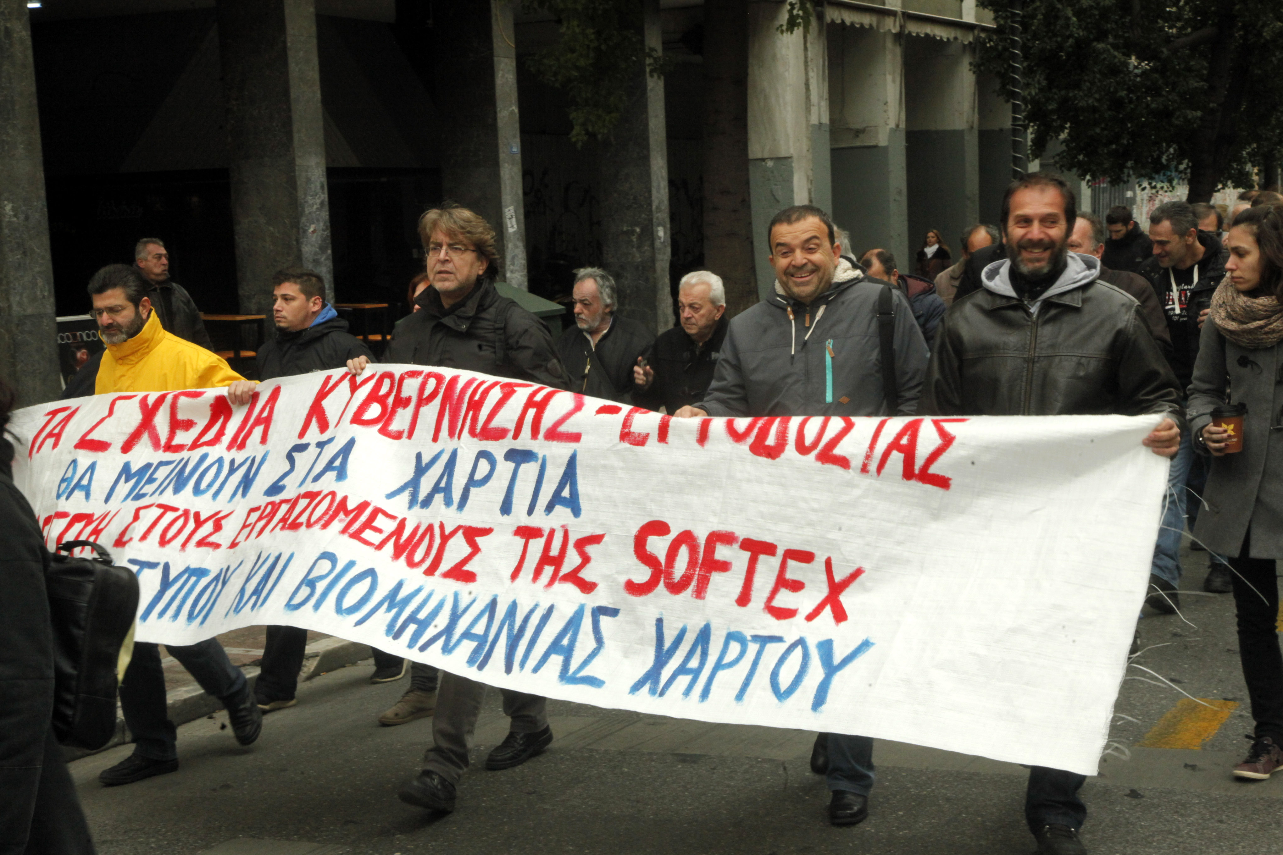 Πορεία διαμαρτυρίας στο υπουργείο Εργασίας από εργαζόμενους της Softex [εικόνες]