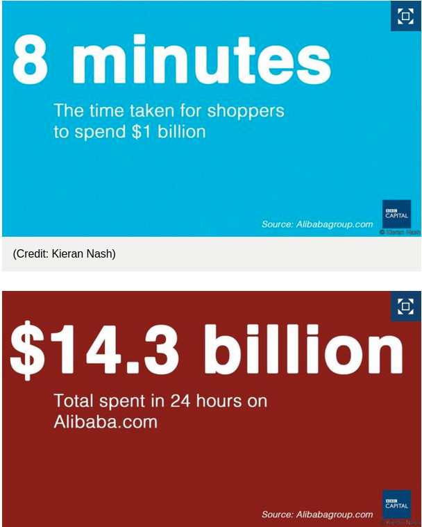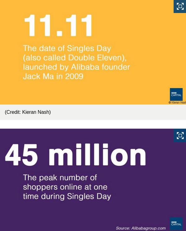 Το Alibaba για τους Κινέζους είναι ότι για τους δυτικούς το eBay και το Amazon, ενώ το «Singles Day» είναι η ημέρα κατά την οποία γίνονται οι περισσότερες ηλεκτρονικές αγορές στην Κίνα.