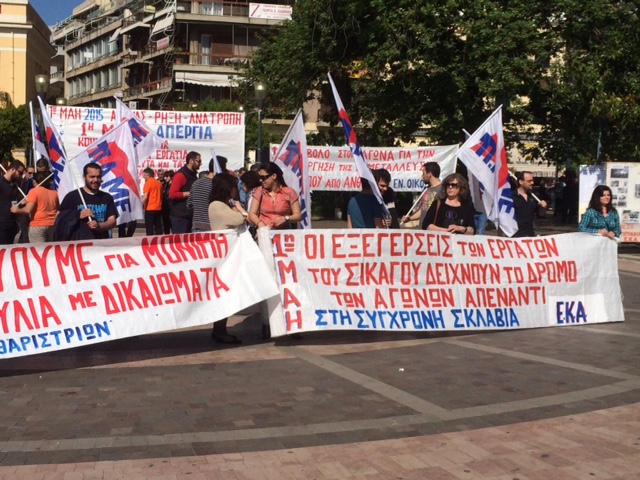 Η συγκέντρωση του Εργατικού Κέντρου πραγματοποιήθηκε στις 10.30 το πρωί στην πλατεία Εθνικής Αντίστασης και συμμετείχαν το νομαρχιακό παράρτημα της ΑΔΕΔΥ, εργαζόμενοι του ιδιωτικού και δημόσιου τομέα, εκπαιδευτικοί, γιατροί, άνεργοι, ελεύθεροι επαγγελματίες, φοιτητές, μαθητές, συνταξιούχοι, τοπικές οργανώσεις κομμάτων κ.ά.