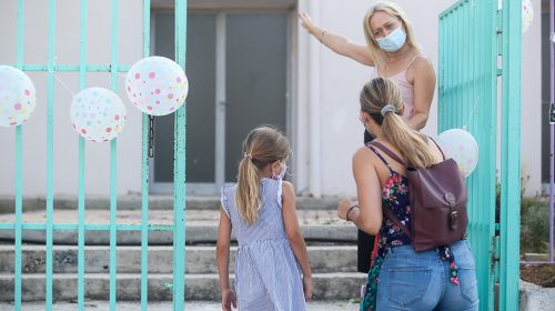 «Για αυτό ανοίγουν τα σχολεία. Τα παιδιά είναι η πιο ασφαλής ομάδα ηλικιακά. Δύσκολα κολλάνε και δύσκολα μεταδίδουν τον ιό. Τις μάσκες τις φοράμε για να μην υπάρχει διασπορά του ιού. Προστατεύουμε τον εαυτό μας και τα άλλα παιδιά», πρόσθεσε.