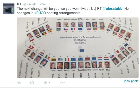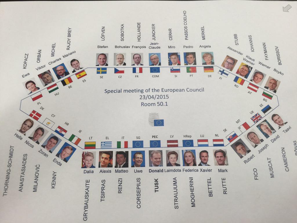 Η Σύνοδος Κορυφής άρχισε στις 16:35 με ενός λεπτού σιγή για τα θύματα από τα ναυάγια των μεταναστών, με τον Αλέξη Τσίπρα να κάθεται ξανά ανάμεσα στους ηγέτες της Ιταλίας και της Λιθουανίας.