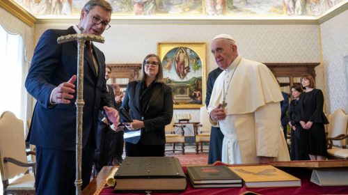 Ο πρόεδρος της Σερβίας Αλεξάνταρ Βούτσιτς δήλωσε ικανοποιημένος από την συνάντηση που είχε σήμερα στο Βατικανό με τον Πάπα Φραγκίσκο. Όπως ανέφερε ο Βούτσιτς, στους Σέρβους δημοσιογράφους που τον ακολουθούν, ο Ποντίφικας του επανέλαβε την στάση του Βατικανού να μην προχωρήσει στην αναγνώριση της ανεξαρτησίας του Κοσόβου, όπως αναφέρει το Αθηναϊκό Πρακτορείο Ειδήσεων.