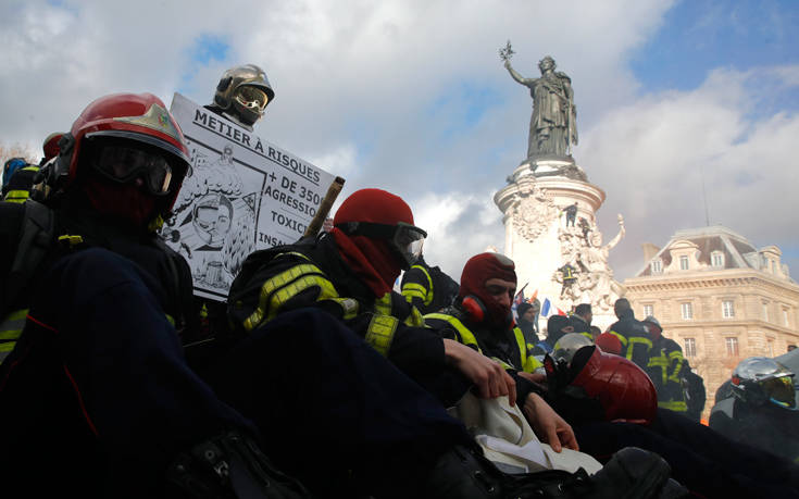 Χιλιάδες πυροσβέστες συμμετείχαν στην κινητοποίηση στη γαλλική πρωτεύουσα, αξιώνοντας την αύξηση του επιδόματος κινδύνου, που δεν έχει αλλάξει από το 1990.