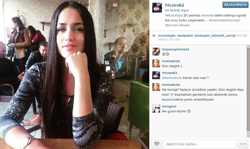 Τουρκικά μέσα έχουν κάνει φωτομοντάζ τη φωτογραφία της 19χρονης με τη Σιμπέλ Καν και την τρύπα από τον πυροβολισμό στην πόρτα του σπιτιού
