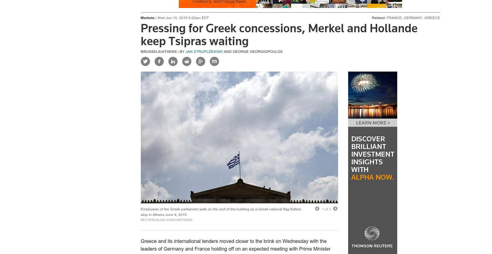 Σύμφωνα με το πρακτορείο η Γερμανίδα καγκελάριος και ο Γάλλος πρόεδρος έχουν τον Αλέξη Τσίπρα στο… περίμενε ούτως ώστε να κάνει περισσότερες υποχωρήσεις.