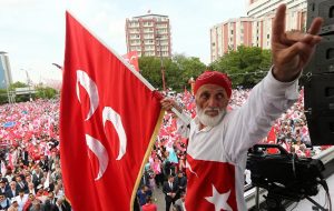 Με αμέτρητες σημαίες της Τουρκίας, μπλούζες που αναφέρονταν στην Άλωση της Κωνσταντινούπολης και σχηματίζοντας με τα χέρια το σήμα των… [24 Ιουλίου, 2020 - 16:48]