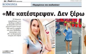 Η 34χρονη ασφαλίστρια, που δέχθηκε επίθεση με βιτριόλι από ένα μαυροντυμένο άτομο έξω από το γραφείο της στην Καλλιθέα, περιγράφει… [26 Μαΐου, 2020 - 22:58]
