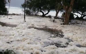 Υψηλός κυματισμός και θυελλώδεις άνεμοι στην Κέρκυρα παρέσυραν αφρό από τη θάλασσα στην ξηρά. Σημερινές εικόνες από τα αποτελέσματα της…[13 Νοεμβρίου, 2019 - 19:12]