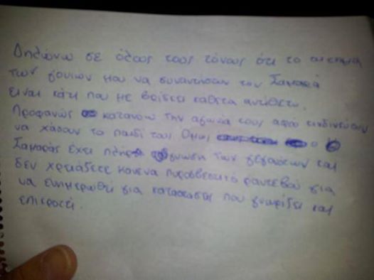 «Καταλαβαίνω την αγωνία τους αφού κινδυνεύουν να χάσουν το παιδί τους, αλλά είμαι κάθετα αντίθετος να συναντήσουν οι γονείς μου τον Σαμαρά» δηλώνει με σημείωμα του ο Νίκος Ρωμανός. «Ο Σαμαράς έχει πλήρη γνώση των γεγονότων και δεν χρειάζεται κανένα πυροσβεστικό ραντεβού για να ενημερωθεί για καταστάσεις που γνωρίζει και επικροτεί» καταλήγει το σημείωμα.